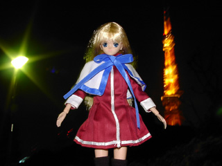 結局、23時10分頃から0時30分くらいまで東京タワー周辺を車でうろうろ。この人通りの少ない時間、えいっ!とか襲われたら助からない。物盗りからドール撮影者に対する謂れなき迫害まで様々な妄想が頭の中をよぎる。撮影中、暗闇から人が来るたびにビクビクとしていた私ですが.......逆の立場から見れば暗闇でサアラさん相手に撮影している私も恐かったろうなぁ。と思わないでもないでふ。