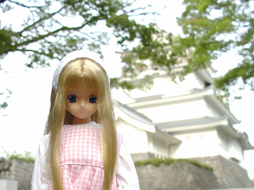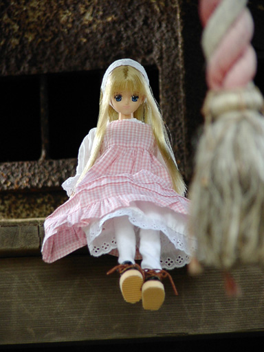 お洋服はフェスティバルキャットさんのもの。いつもお世話になっております。決して出来が良い!!と手放しにお褒めできるつくりではありませんが、とにかく安いのです。このお洋服は800円。今までにも4種類くらい購入させていただきました。一着などは糸を一度抜いて、また、通し直さなければいけなかったものもありましたが、それでもお買い得だとオモウですよ〜。がんばってほしいなぁ。
