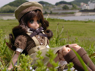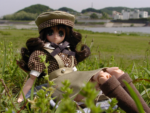 多摩川河岸段丘部。可愛いっと思って買ったお洋服。すごく丁寧な作りでよいのだけれども、胸のリボンとminiにはちょっと大きい白いエリは扱いに困っている。
