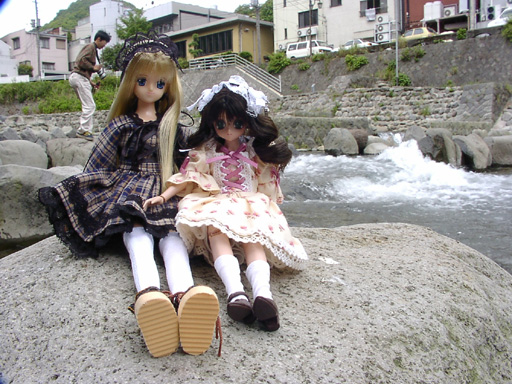 河原ってなんかいいっすよねぇ。ぼ〜っとしていられる。最愛のドール達と一緒でも余人も近づいてこないし。橋の上から鈴なりになっていたりするけど。(笑