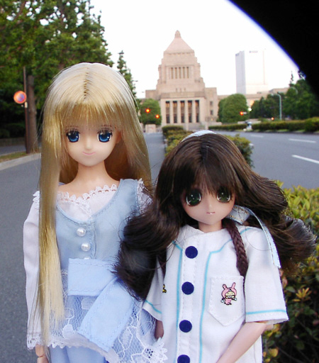 ここからなら10cm級の迫撃砲でも十分に衆参両院にブチこめるとか、ワケわかんないこと、よるるんが呟いていたわ。そんなに捕まりたいのかしら。そういえばこのあと、厳しい制服を着たお兄さんが車の中を覗いてきたのよね。こんなところに車を止めるなって。まわり中、見回して近くに誰もいないと思ったから撮影を始めたのだけれどビックリしたわ。どこから沸いたのかしら。私を見て、「可愛いお人形だね」って言ってくれたの。え? 楓ちゃんを見て言ったンだって? それは違うと思うなぁ。お兄さんがきたとき、楓ちゃんはよるるんがダラシガナイ顔で髪の毛整えたりリュックを背負ったりさせている最中だったから、慌てたよるるんにお兄さんの視線から隠されちゃったじゃない。だからぁ。堂々と助手席に座っている私を見ていったンだと思うけどな。