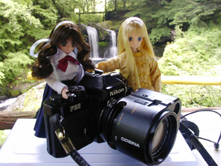 写真の銀塩カメラは対実家・ドール撮影カモフラージュ用のニコンFE2&コシナ35-70自立オートフォーカスレンズ。風景写真用に持っていったもの。単焦点レンズばっかりな私のレンズの中で、現在稼動する唯一の標準-ワイド系ズームレンズ。電池内臓だからすごく重たい。