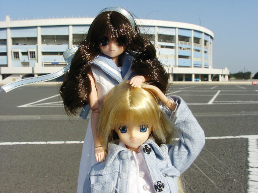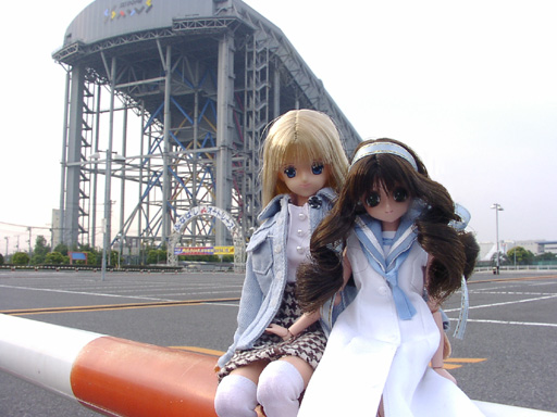 千葉マリンスタジアム名物、海風。主にスコアボード方向から吹く風はホームランの数を減らしてしまうという、それじゃなくても貧弱なロッテ打線の敵です。ここ球場前駐車場では愛しの娘たちの撮影の邪魔をしてくれました。特に風に弱いサアラさんの髪の毛を、楓ちゃんに手伝ってもらって無理矢理、押さえ込ンでの撮影です。