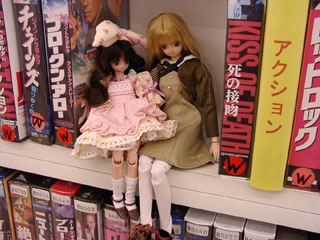 食事を済ませて移動開始。R246に復帰すべく、学生時代に通学路「ぎょうこうどおり」で厚木方面へ。もう懐かしシリーズで行ってしまえ。やはり学生時代に長らくアルバイトとして雇ってもらっていたビデオレンタル店、海老名市の「ビデオサークル」に。残念ながら店長は休憩中でいなかったが、マルチな仕事、方面で活躍されていて今でも各方面でお話する機会がある I さんが店番をしていたのでお仕事中にもかかわらずちょっとお話につきあってもらいました。ついでに店内でちょこっと撮影。本当はビデオサークルの売りであるアダルトビデオコーナーで撮りたかったのだけれど、楓ちゃんもサアラさんも未成年です。そんなところに連れて行くわけにはいきません。普通のビデオ棚で一葉。
