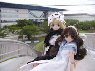 開場を二周した頃、猛烈な睡魔に襲われる。それなりに寝た筈なのに無茶苦茶眠い。開場外の廊下のソファを求めてうろうろ。ぬ〜。どれもお人形が座っておる。(笑