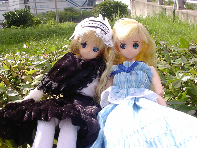 hatranさんちのブリティッシュさんとのツーショット。か・わ・い・い。サマードレスがとてもキレイ。こうして並んでみると眼の色が違うというお話もまんざらデマと切り捨てることはできない気もする。ま〜、うちのサアラさんは随分と年季入っているからなぁ。単に色落ちしているだけかもしんないけど。