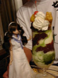 この氷がまた強敵だった! もうすでに閉店の2200を過ぎている。さっさとコレをかたづけなければならない。機械的に氷を口に運ぶワシ。途中からパフェをやっつけたかなたんが手伝ってくれる。それでもキツイ。