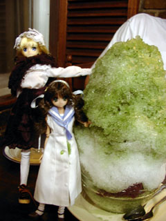 大きい。先年食べた「巨峰」の半分くらいの高さしかなかったがそれでもデカい。もう閉店時間なので慌てて撮影。サアラさん、楓ちゃんともカキ氷まみれ。も〜ベトベト。みんなには秘密なのですが、アトで全身リップで舐めとりましたよ。うん。