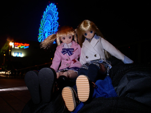 ダレがのっているのやらダレが見ているのやら。煌々と光る世界第二位の大きさを誇るその姿。