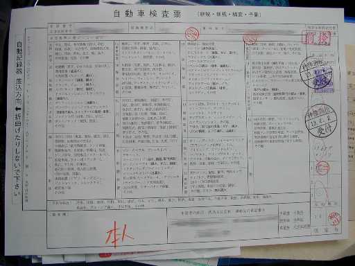 こいつが、コースインしたときに必要な書類。 裏面に車両について寸法等を書く欄があるのですが、指示がなかったんで空白のままいきましたが、何も言われませんでした。 この用紙はボールペンで記入します。 この状態は全検査が終了したところです。(^^)