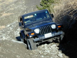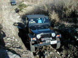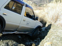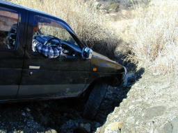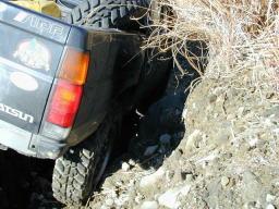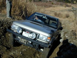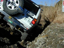 駄駄羅坂へ向かう、ひらぬま@D21ダットラさん。 進入部の侵食がひどく、どうしようかともめていたところ、 「一番ボロい車が行きましょう。」と進んで先陣を斬って行きます。 |