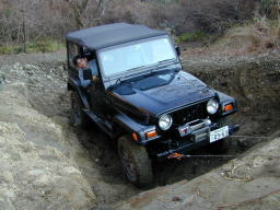 なにげに、TJで自車のレスキューにウィンチングするのは初めてだったりします。 ダブルで引きます。 |