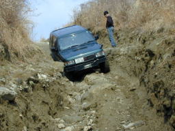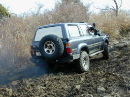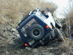 で、ようやく後続発見。 ここは、ダートキングでしたっけ? shoichi@KZJ78Wさんがトライ中。 やはり、エアをおとしてないようで、苦労されてました。 この前か後かで、しんたな@KZJ95Wさんはトラブル発生で撤退されています。 |