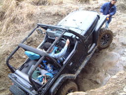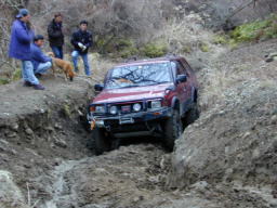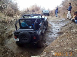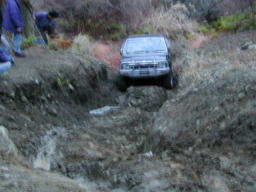 デフを後ろロック→前後ロックしますが、ダメなものはダメ。 最後は後ろロックのみで、突撃モード。 何とか最後の岩盤ステアケースまで登れました。 おつりで、空から泥降ってきましたけど。(^^; #画像提供 by おっさん |