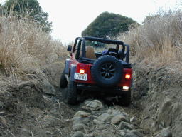今のF2って、普通の道が難所と化してるところが点在してるようです。 岩につっかえる、みずかみさん。 でも、何度か仕切り直してパスしていきます。 |