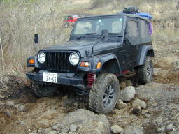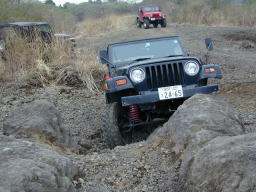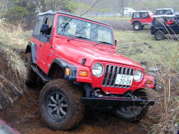 いいとこまで上がるんですが、同じところで流されます。 やはり、純正ノンスリでは厳しいです。敢え無く退場。 このあと、私も行きましたが、前後入れて、下品にクリアしちゃいました。(^^; みずかみさんは、前後入れて、アイドリングで通過したそうです。 |