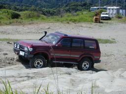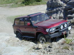 初めましての、JO@L/C80さん。 ん〜、やっぱりでかいです。>ハチマル 普段は、SJ30で遊んでおられるそうですが、長距離走行の信頼性がなく、今回はハチマルでの参加。 |