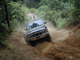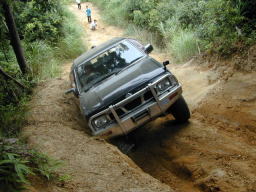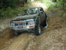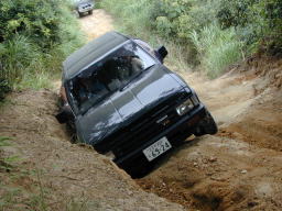 最後は、ひらぬまさん。 ロングホイールベースを生かし、なんとか上がりますが、245では辛すぎる轍です。 |