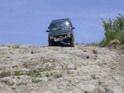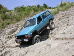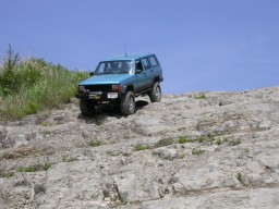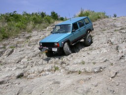やっと、動き出します。 横着したのか、思わず前脚が落ち、左リアを浮かせてのパフォーマンス。 |