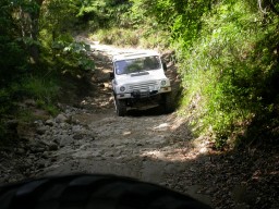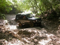 ここからがなが〜いガレ場のヒルクライムです。 としきさんは途中でちょっと仕切りなおして進んで行ったのですが、私はFデフがつっかえます。 見かねたムラさん、みしまさんが土木作業を手伝ってくれました。m(_ _)m あとは土木作業と、アクセル全開で突き進んで行きましたが、ちょっとアクセル踏みすぎと反省。 |