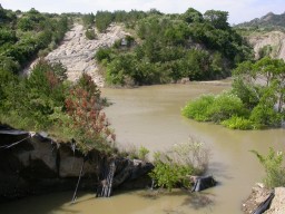 鬼追坂を上がり、目を疑う景色が! トップ・オブ・ザ・チェストの下一体が池と化していました。 きっと排水が処理できなくなって、溜まってしまったんでしょう。 |