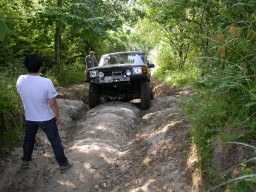 したら、この有様です。(ToT) せっかくのクリアレンズがぁ、、、 ちなみに最後の砂岩ステアは、としきさん、私とも自走できずにウィンチング登頂でした。 私が砂岩ステアにアタック中、ムラさんは足首にまとわり付いたヒルを退治してました。 私の土木工事の手伝いのため、草むらを歩いたときに張り付かれたようです。 みしまさんもヒルが張り付いてる筈なんですが、姿を見るのがいやということで、見て見ぬふり。 |