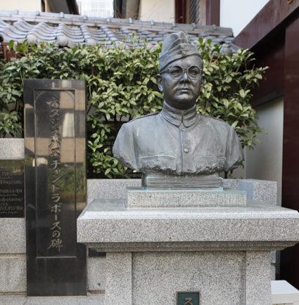 また、杉並区には、インド独立の英雄とされているチャンドラ・ボーズの遺骨が、丸ノ内線東高円寺駅近くの蓮光寺に安置されていて、戦後故インディラ・ガンディー首相など多数の印度の政府要人が訪問しました。蓮光寺内には、下の写真のようにチャンドラ・ボーズの胸像も建てられています。