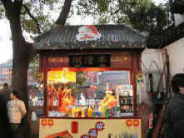 上海新天地・街角いろいろ 最後の日は、あちこち歩きまわり、上海新天地とおぼしきエリアに入り込んだ。飲食やショッピングのある娯楽センターであった。青煉瓦と黒煉瓦造りの建物が軒を並べている。シックな中にもしゃれた店が連なっている。 ここで、中年の品のいい紳士に呼び止められ、「そこで美術展をしているので見に行きませんか?私はこういうものです」と名刺を渡された。名刺には何とか美術大学教授と書いていて「日本にも行ったことがあります」という。 しかし、どうもうさんくさく、適当に受け答えして精一杯話をさせた後断ると、渡してくれた名刺を戻してくれといい、そそくさと立ち去った。どうも日本人はカモにされやすく、特に私はカメラを提げて眼鏡をかけて、あちこち眺め回しているので、声をかけやすいのかなと思う。 いろいろまたもや珍道中であったが3日間の上海旅行は終わった。2010年には上海万博があるが、それに向けて急ピッチで工事をしていた。もう昔の面影をとどめる懐かしい町並みは消えているだろう。 経済成長著しい中国の、その先端を行く街を見ることが出来てよかった。今は自転車が道いっぱいだが、もし次回ここに来ることがあったら、自動車と自転車の比率は逆転しているかもしれない。しかしそうなれば今よりさらに空気が汚れるだろう。 実は、この旅行で私は軽い気管支炎になった。とにかく3日の滞在中喉のいがらっぽさが消えず、日本でさらに悪化してしまった。息子はさらに悪くなっていた。 経済発展もいいが、日本の高度経済成長の悪さ加減を知ってもらって今から空気を綺麗にするための手を打ってほしいと思った。しかし中国独特のパワーと明るさが楽しくまた来たいという気にさせるいい旅であった。