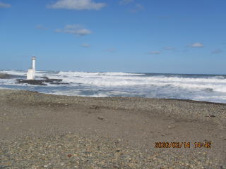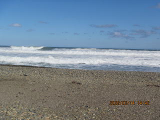 3月14日 (土)晴れ、 大洗ホテル下 の海です 沖からの 大ナグロです