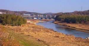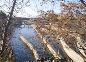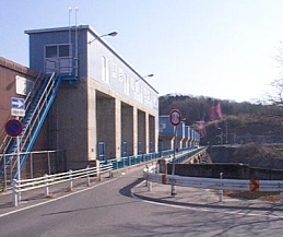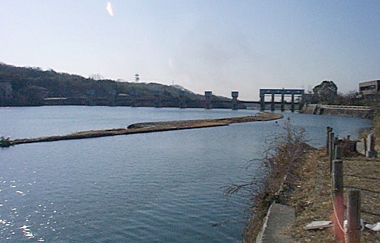 水門を反対側から見てみる。 (川上側からの風景) 右端に上図の4門の水門が見られる |