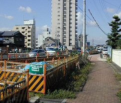 国道一号線を、名鉄「新安城」駅の所で横切り