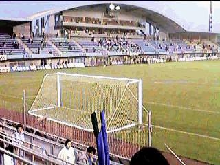 一方のフリューゲルスも中盤から攻めを組み立てますが、ゴールにはならず。森山のシュートもバーに弾かれたりとため息がゴール裏を埋めます。前半もかなりチャンスがあったようですが、反対側のゴールではいまいちよくわからない。やはり三ッ沢はいいな〜。