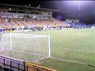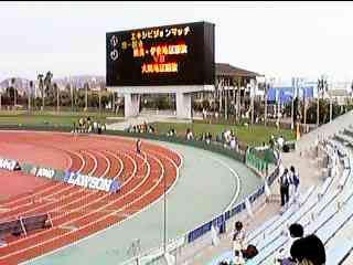 しかしサッカーとはわからないものです。35分過ぎそのバウベルが2点目をGETし、0−2と京都を突き放します。現地にまで行っていながら本当に申し訳ないのですが、反対側のゴールが異常に遠くてネットに入った以外は他の選手の陰で何も見えませんでした(三浦のロングスローが流れたところをバウベルがシュートらしい)。前半は0−2で終了です。