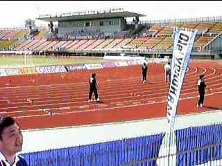さて、競技場に入って一番驚いたのが「芝」。あちこちめくれてしまっていたり(地面から芝が浮いているような感じ)、はげてしまっていたりで非常に悪いコンディション。グランド整備の方も努力されているのでしょうが、天候には勝てなかったという感じです。競技場に着いた選手の中にはグランドに出て直接芝の状態を確認する選手もいてちょっと心配です。