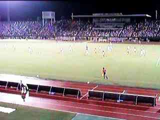 徐々に試合のペースをつかみだすフリエですが、中盤でためが出来ないためか単調な(というよりもったいない)攻め。雨も降ってきたりで、思ったようなパスワークも不可。前期のパスをつなぐ面白いサッカーは見られません。結局0−0で前半を終了。