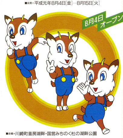 平成元年に、末永君が帰県して、「みちのく杜の湖畔公園」を初代所長としてオープンさせました。 国営公園では初の「公園キャラクター」のアイデアをだして、安曇さんになんとかオープンに間に合うように作ってくれと依頼してきました。安曇さんは一生懸命作ったのですが、上記のイメージ画の通りにはぬいぐるみが出来上がらず、恐縮しながら納めました。末永君も不満気でしたが、来場記念にもらった子供たちには人気上々だったので機嫌が直り、安曇さんもほっと一安心したというエピソードがありました。しかぼー君はどこか末永君に似ていますよね。