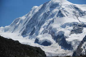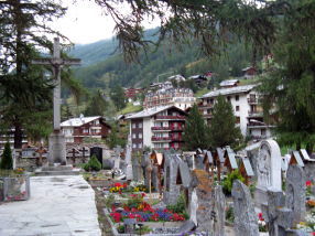 | 8月11日(火): 昨日の雨はすっかり晴れて、ホテル近くの駅からスネガ・エキプレスでスネガ展望台へ。ハイキングガイドの村上氏が待機。地下ケ−ブルを数分で、スネガ展望台2288mに。見望する山群についてガイドさんから説明を受ける。空をヘリコプタ−の音。モンブランへの荷物を運搬しているエア・ツェルマットのエリコプタ−で遊覧飛行もしていますと。 さあ、ハイキングの出発へ。まず展望台の下に見えるルイ湖に。ここで逆さマッタ−ホルンの写真を撮る。午前中が撮影に良いとのこと。ライ湖はモンタンベ−ル鉄道のリッフエル湖よりも風が少ないので、逆さの山影がすっきり撮影できるとのこと。マッタ−ホルン山頂から雲がパイプの煙のようになびいている(パイピング マッタ−ホルン)。ヨ−ロッパで一番高所にあると言われる?フィンデル村を通る下り坂のこのハイキングコ−スは、常にマッタ−ホルンを目の前に見ながらのコ−ス。村には眺望の良いレストラン。ネズミ返しの小屋。 この数年、両膝の慢性の痛みのある小生には、少しきつかったのか、最後には添乗員さんが横につき、両膝が笑い、がくがく。ヴィンケルマッテンから丁度来合わせた電気タクシ−に乗り、最終目的地のツェルマット駅へ。 昼食後、フリ−タイムとなり、駅前からゴルナ−グラ−ト鉄道(通常のパックツア−の定番)で約40分の所要でゴルナ−グラ−ト展望台3090mに。車窓の右側にマッタ−ホルンを見ながらの登山鉄道。マッタ−ホルン、ブライトホルン、リスカムそして眼下に雄大なゴルナ-氷河の眺め。天気も良く素晴らしい眺望で、展望台のレストランで寛ぐ。からす?か、大きな鳥が餌を求めて時々、手摺にとまる。 ツェルマットの街はこじんまりとしており、遭難者共同墓地あたりまで歩き、散策する。夕食を駅前のレストランでチ−ズフォンジュ等を。決して、うまいものではない。やはり、スイス陸軍の考えた非常食という印象。 |