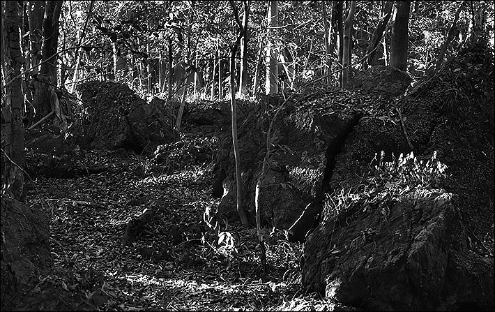 見どころの多い神社だが、社殿後方の丘陵に上ってみると、そこには巨石が点在する岩場があり、多様な信仰をもった神社のイメージとは、違った趣が見えてくる。