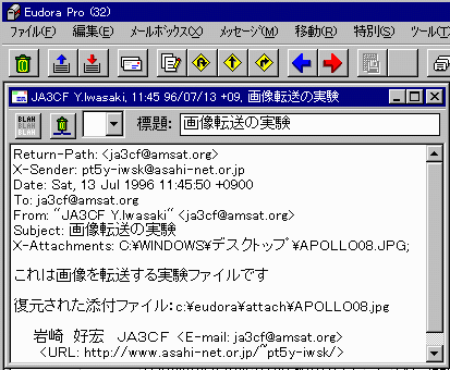 いろいろな情報からマッキントッシュの人気ソフト「EUDORA」がWindows95用に発売されているのを知り,早速それを入手して使ってみましたのでレポートします.