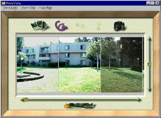 最新のデジカメにはパノラマ画像の作成機能つきもあるようです。いま画像をつないでパノラマで見ることは、デジカメの楽しみ方としてちょっとしたブームになってきています。先月号で紹介した「PhotoVista日本語版」(\16,800)は、JPEGやBMPなどの画像をつなぎ合わせて、360度切れ目なしのパノラマ画像が作成できることを話しました。