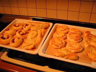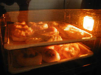 | 2次発酵をさせたあと、オーブンで焼きます。 おいしく焼けるといいなぁ。。 |