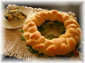 ↑今日のパン 「三つ編みパン」 暑さにかまけて、しばらくパン作りもサボってしまっていた ので、久々に今日は作りました。 以前、akiちゃんのお宅に遊びに行ったときに、作って くれたのを思い出し、特大サンドイッチのように、間に レタス、玉ねぎ、トマト、ベーコン、ソーセージをはさみ ました。ブロッコリーのツナマヨ焼きと一緒にランチタイム。 冷蔵庫掃除と言う話もあり。。 |