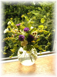 | このページにもいらして下さってるよこさんが、誕生日おめでとう、と 花束をプレゼントして下さいました。どうもありがとうございます。 皆さんが、私にプレゼントしてくれるお花、いつも似ています。 きっと、みなさんが抱いている私のイメージというのが共通なのでしょう。 よこさん曰く、「野に咲いてる花を摘んでみた」という感じだそうです。 白、黄色、緑。これが基本の色のようです。 でも、確かに、私はこういうお花が大好き。 真っ赤なバラというイメージじゃないですね(^^ゞ |