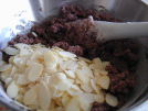 | 5. | 粉っぽさが少なくなってきたら、アーモンドスライスを加え、混ぜる。 |