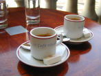 | 「MARIAGE FRERES」 1854年創業、とこちらも伝統のある「マリアージュ・フレール」。日本にも4店舗あるので知名度が高いですね。パリには3店舗あります。 今回私が行ったのは、プリアイさんオススメのお店。 お昼御飯も食べずに観光名所を歩いていた私達。お腹も空いたし、足も痛くなって来てそろそろ座りたいなぁ、と思っていた時に、このお店が近くにあることを思い出し、足を運んだのでした。 1階部分が茶葉や、茶器を売るブティック。2階がティーサロンになっています。そして地下は紅茶博物館。この作りは、どのお店でも変わらないですね。 お昼を食べていなかったので、軽食にするかケーキにするか迷った挙げ句、私はやっぱりケーキを頼んでしまいました。頼んだのはタルトタタン。1ホールが日本と比べると大きいのにもかかわらず、それを6分の1はあるのではないかと思われるほど大きくカット。1ピースが巨大なのです。運んで来てもらった時には、その存在感に圧倒されてしまいました。口に入れると、とろっと溶けてしまうほどやわらかく、そして甘〜い。これだけの甘さにこれだけの量。う〜ん、全部食べられるかな、、と思いつつ、頑張って全部食べてしまいました。素材のリンゴも美味しいのでしょうけれど、うん、味にも量にも大満足。紅茶は、マリアージュ・フレールでも1番人気の「マルコ・ポーロ」をいただきました。 1階のブティックのギャルソンは、東洋系のお顔の方。銀座のマリアージュ・フレールにもいらしたことがあるそうです。全体的に、日本より少し安めかな、と思いました。でも、やっぱり高いですけどね。 |