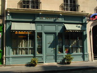| 「LE SOUFFLE」 お店の名の通り、スフレ料理ばかりのお店。 スフレ料理!?と思われる方も多いかも知れません。 スフレって言うと、すぐイメージするのが、チーズスフレ。甘〜いお菓子のイメージですよね。でも、ここはちゃんとしたレストラン。スフレのコース料理まであるのです。 以前、ちょっとだけフランス料理を習っていた時に、ナスのスフレを習ったことがありました。その時に「え!スフレってお菓子じゃないんだ!」と驚いたのですが、パリにはこうやって、スフレ料理専門のお店まであるんですね。 このお店、外からは中の様子が全然わかりません。ドアは板扉だし、窓にはカーテンが閉めてあるし。お昼12時の開店よりちょっと早く着いてしまったので、まだかなぁ、と思っていたのですが、12時ちょっと過ぎて、ドアをおそるおそる開けてみると、、、「Bonjour!」と出迎えて下さいました。 メニューは、ちゃんと日本語の物まで用意してありました。やっぱりありました。スフレのコース。前菜のスフレ、メインのスフレ、デザートのスフレ。量が多いという話だったので、コースはやめて、前菜にエスカルゴを頼み、そして、スフレを1品頼んでみました。そうしたら、お店の方が「デザートは食べないの?」と聞いてきたのですが、とりあえず1品だけ。 そして、やってきたスフレ。私はほうれん草のスフレをオーダーしたのですが、直径12〜3cmはあるのではないかと思われるほど大きなココット皿に、山盛りに盛り上がったグリーンのスフレ。さて、食べ始めると、口の中でフワッととろける感じ。美味しい。でも、やっぱり量が多い。食べても食べても減らないスフレ。しかも同じ味(当たり前だ)。う〜ん、胸が苦しい。。もっと一つのサイズが小さくて、何種類も食べられたらいいのになぁ、と思ったのでありました。 でも、ちょっと背筋が伸びる感じの素敵なお店でしたよ。お店の方も素敵なおじさまばかりでした。 |
