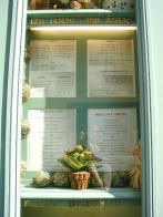 | ↑外からでもメニューがわかるようになっています。きのこのスフレ、チーズとハムのスフレ、ほうれん草のスフレ、魚介類のスフレ、、、、。 | ||