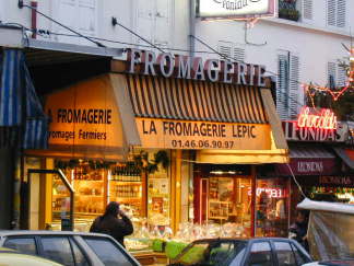 | カフェ・ドゥ・ムーランの斜め向かいにあった チーズやさん。「ラ・フロマージュリー・ルピック」 中に入るとチーズ独特の臭〜いにおいがします。 苦手な人はきっと卒倒してしまうかも。 ショーケースの中には、フロマージュブランのような フレッシュチーズから、カマンベール、ハードチーズ まで沢山のものが揃っていました。 そして、クリスマス用に、カゴに一口サイズの カラフルなチーズを盛り合わせたセットなども。 そのまま食卓を飾れるようになっていました。 帰国当日だったら、買いたかったなぁ。 |