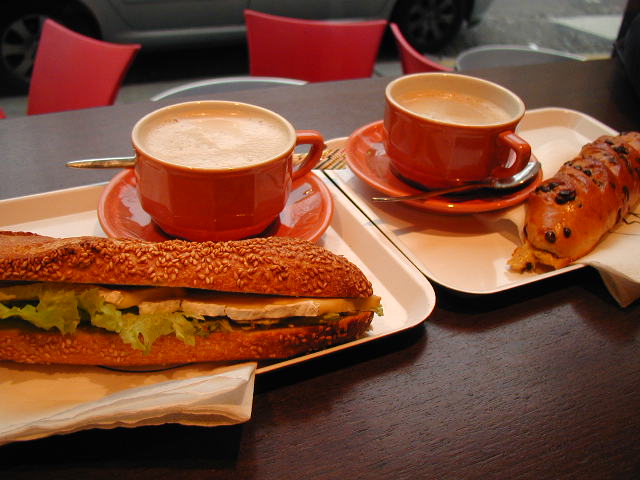 | ブーランジュリー・レストラン・エリック・カイザー 日本でも人気のメゾンカイザーのレストランです。 お店についたのがこれまた早くて11時前だったので、 まだランチが始まるまでに時間があったために、 コーヒーとパンをカウンターで食べました。 その間も、ひっきりなしにお客さんが。 本当に人気のあるお店なんですね。 |