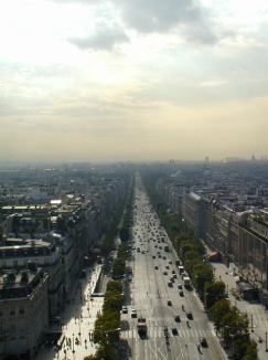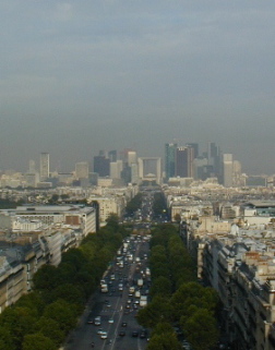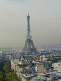 | 真っ直ぐに伸びるシャンゼリゼ通り。道の両脇に、街路樹が真っ直ぐに植えられています。 | ちょうど反対側のグランド・アルメ通り。真っ白で四角いグランド・アルシュ(新凱旋門)が見えます? | 凱旋門から見たエッフェル塔。 パリといわれて思い付くもう一つの観光名所。 |